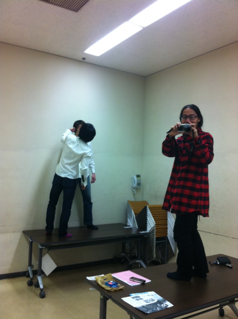 遅れて稽古場入りした私の視界は既に撮影中の男共・・・と山口さん( ´ ▽ ` )