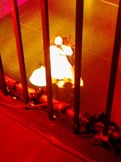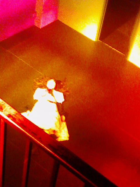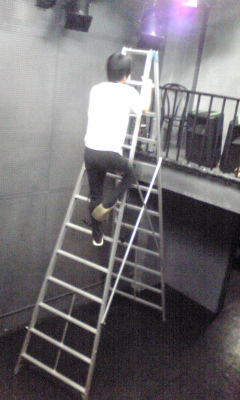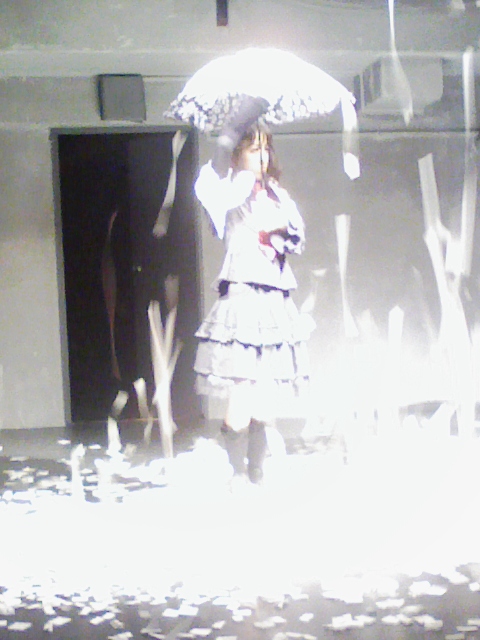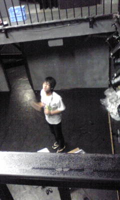 ①、舞台上を掃くのは中山さん。結構恥ずかしい姿。しかし、この写メだと貞子みたい。