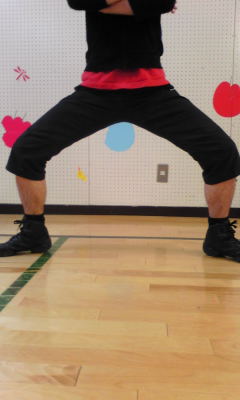 できたと思ったら、右足を横にずらしつつ腰を沈める。相撲のしこを踏んだ姿勢に近いです。